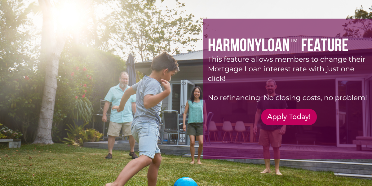 The HarmonyLoan™ is a mortgage product that gives greater economic security by providing member-initiated interest rate changes at the “click” of a button!